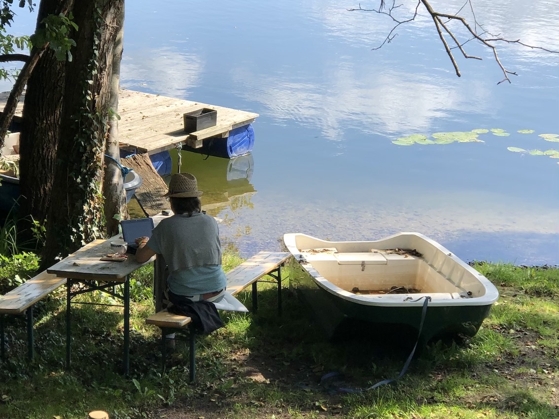 Und auch dieses Mal: An dem idyllischen und mit Kunst angereicherten Ort flossen wieder die Texte auf das Blatt. Bereichert und beglückt fuhren wir nach Hause.